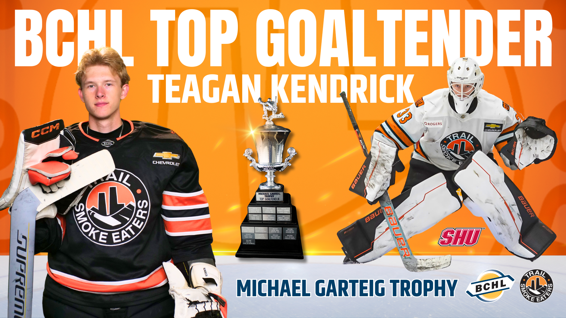 Teagan Kendrick named this year’s winner of the Michael Garteig Trophy as the BCHL’s Top Goaltender.