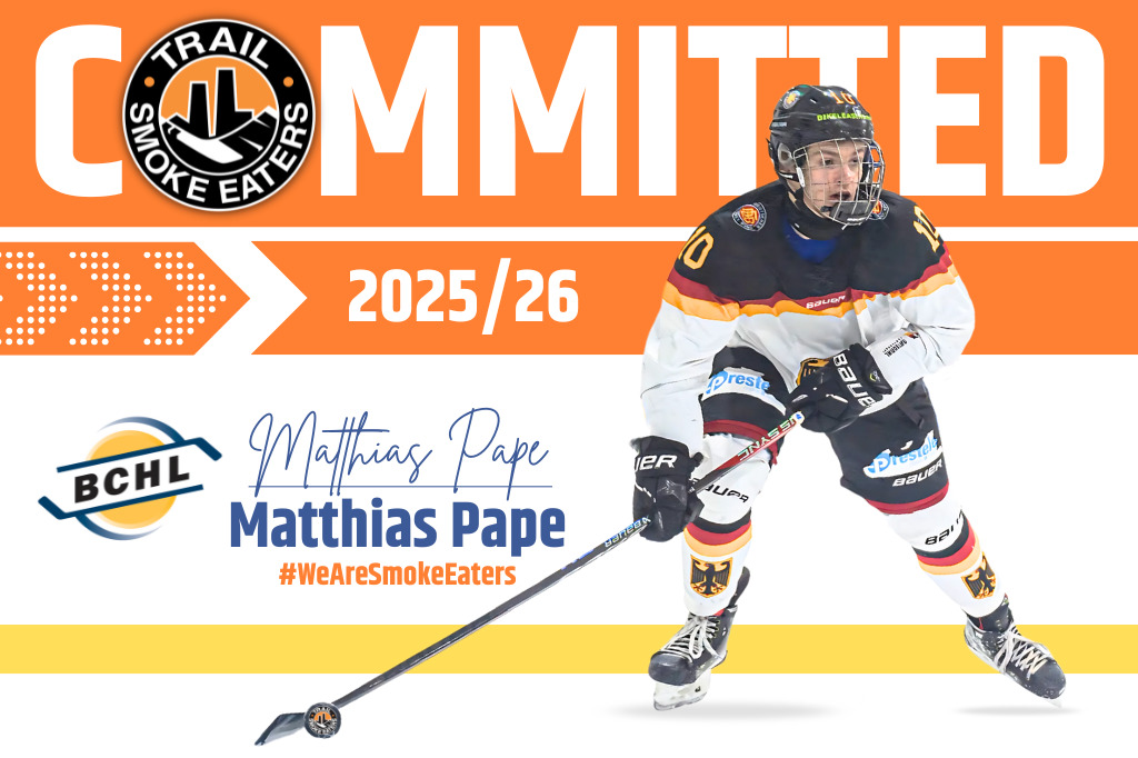 The Trail Smoke Eaters have signed Matthias Pape for the upcoming 2025-26 season and he will join the team for Smoke Eaters Main Camp scheduled for August 30 to September 1.