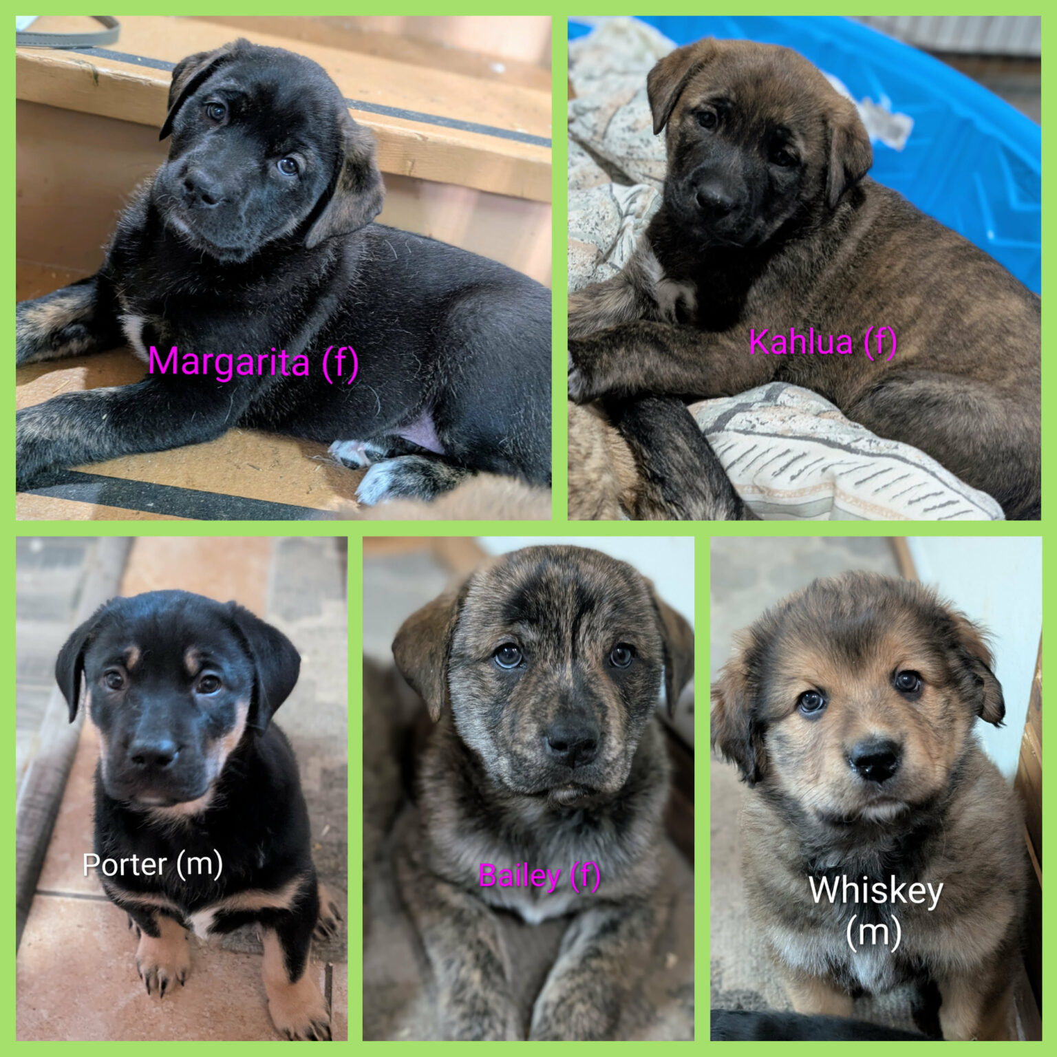 These five beautiful puppies came to KAAP with their mama (Shai, included in photos and will be available for adoption after her spay) when they were just a few days old. They were homeless and rescued from -40 degrees in the dead of winter. They are truly just delightful, all of them. Shai is a medium sized Shepherd (?) mix. We really don’t know. And nor do we know who any of the dads were of the puppies, although it’s more obvious in some than others. They are on track to be bigger dogs, and not “apartment” sized. They will need lots of time, patience, love, training, and experiences to grow into their best selves and they will be just amazing best buddies for you.  Another dog in the home to help show them the ropes would be fabulous too, if you’re looking for a second dog.