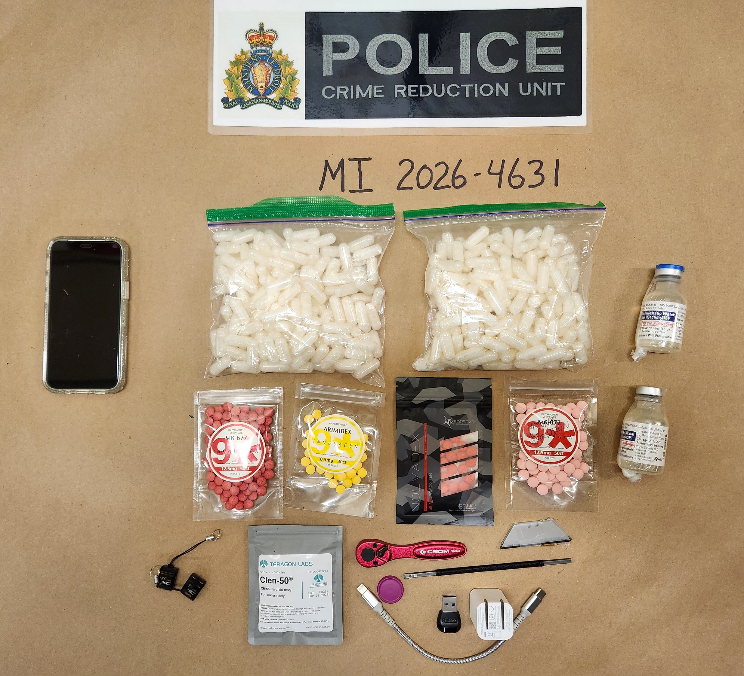 - Bottles of suspected steroids.